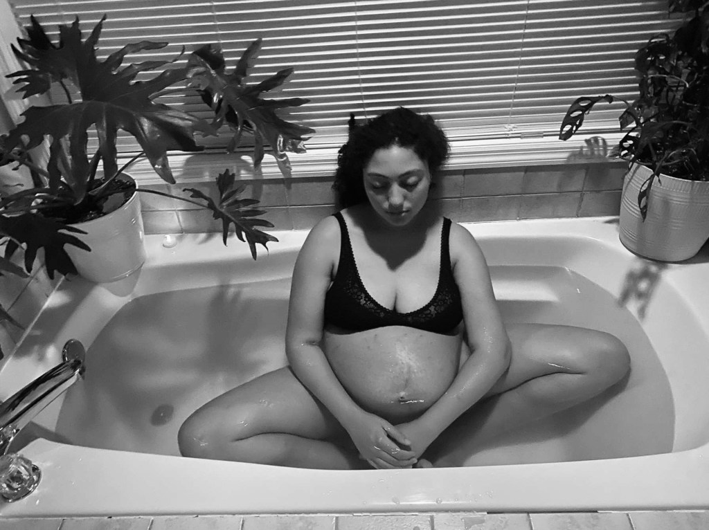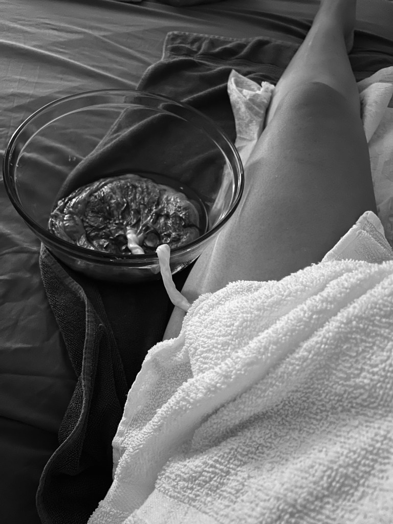 I was 38 weeks 5 days, it was one of those post “I don’t think I can be pregnant much longer” days, I was very cranky and irritable, and needed to nap not once but twice that day. My 2 yr old and 1 yr old joined me for my second nap. About an hour later I woke from my nap and around 6 o clock, about 30 minutes later I started to feel tightenings over my belly; not painful, just sensations. I decided to roll and rotate sitting on my exercise ball for about 10 minutes, and then I had to get up to finish up on dinner, my husband walked through the door at this point getting home from work. I went to use the restroom and continued to feel these tightenings 7, 10, 5 minutes apart, but no pain. I felt my baby heavily in my pelvis though. I decided then after leaving the bathroom to get on my knees at the side of my bed, leaning my arms over the bed and bring my knees in and my feet out, kind of like a W. Then I proceeded to slightly squat in that position a few times. And…pop! Went my waters, which had never happened to me before in my previous births. My waters would always stay in tact until transition. At this point it’s 7:30pm. I asked my 2 yr old daughter to “go ask daddy for a towel, quick!” As gushes of amniotic fluid we’re leaving my body. My husband then gathered up the kids and their stuff to take them to my moms house while I called a good friend letting her know I was in labor! Contractions began at this point, and were pretty intense and about 5 minutes apart. My friend showed up to cut up watermelon and bring me hydrating drinks while I labored. I continued to loose more of my waters with every contraction. Around 10pm we went on a walk up and down my street, and the theme of the evening was “these contractions already feel so intense, and I just started laboring!” I was refusing to believe how far along in labor I actually was however I just continued on expecting to go all night. We went back to the house where I then decided I wanted to do the side lying release with a ball between my legs, this then sent me into major shakes with a few intense contractions, I could only stay there about 5 minutes. I decided I wanted to get in the shower and my husband sat in the bathroom with me while I groaned through a few intense contractions. I then went straight to the bath from that point, where I stayed for the remainder of my labor, sitting butterfly pose. At about midnight my friend left to go back home, and I continued to labor peacefully in my tub, with my husband holding my hand. We were both exhausted yet so calm and peaceful. We would both sleep in between contractions as they came and went. I remember praying, “Lord thank you for the pain I get to experience, just as you took on pain for your love for us”. I soon began to feel the intense pain of what I would have liked to believe was transition, but again. I kept on saying “this can’t be transition yet, I’ve barely been in labor!”. Wondering how long I would have to endure these extreme sensations, I decided I wanted to self check to see where the baby was at. I gently reached to feel my cervix in which I felt my babie’s head, as well as my cervix, which upon touching it, sent me into an intense contraction, which I would go on to repeat this process unintentionally, a few more times, until I realized “yep this is transition” in which I began to roar with each contraction, following the FER as well as pushing with the sensations as it felt good to. I finally had one surge that sent my babies head out. As my baby crowned I huffed with the surge as to not tear, and then her head fully emerged. I continued to “hold” and huff during the break, and repeated “ok, ok” over and over again, almost as if assuring myself that I’ve got this and this is going well. On the next surge with one good push I sent my baby out into the water where I scooped my baby up and brought my baby to barely the top of my belly as the cord was on the shorter side. I then sighed in relief that it was over, and my baby was with me earthside, and did a check to see that it was a girl! Which I had known all along intuitively without finding out the gender, and was so confident that I would call her by her name while she was still in my belly! I gave her some rubs on her back and sucked some of the fluid from her nose that I saw and she then began to cry. She was also cover head to toe in vernix! Which my other babies barely had any. I sat with her in the tub for 10 minutes keeping her in the warm water with me wrapped in a towel. Then I began to feel subtle sensations in which I decided it was time for my placenta. I gave a slow little push and my placenta came out, mostly. It sat at my yoni and I examined it to then realize some of the membrane must have gotten caught on my cervix. So with my baby still attached to the cord and holding her, I asked my husband for some shepherds purse tincture. After taking it, I then took my finger and wrapped it up around the trailed membrane, following it halfway into my yoni, gave a good cough, and pulled, which then came the rest of the membrane connected to my placenta that had been caught. I then made my way to my bed which was a few feet from the tub, in which I snuggled up and nursed my baby girl and rubbed in every inch of vernix on her body, while the placenta sat in a bowl next to me still attached. About an hour after she had been born, we then tied off the cord with a homemade tie of mine, and my husband and I cut the cord together. Acadia Vaiselli, our precious little one, the Lord knew we needed you and your birth experience, as it brought healing, as well as the start of much more healing than I could have ever prayed or hoped for.