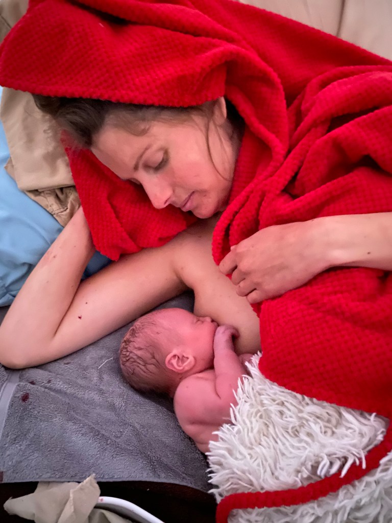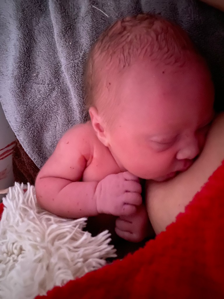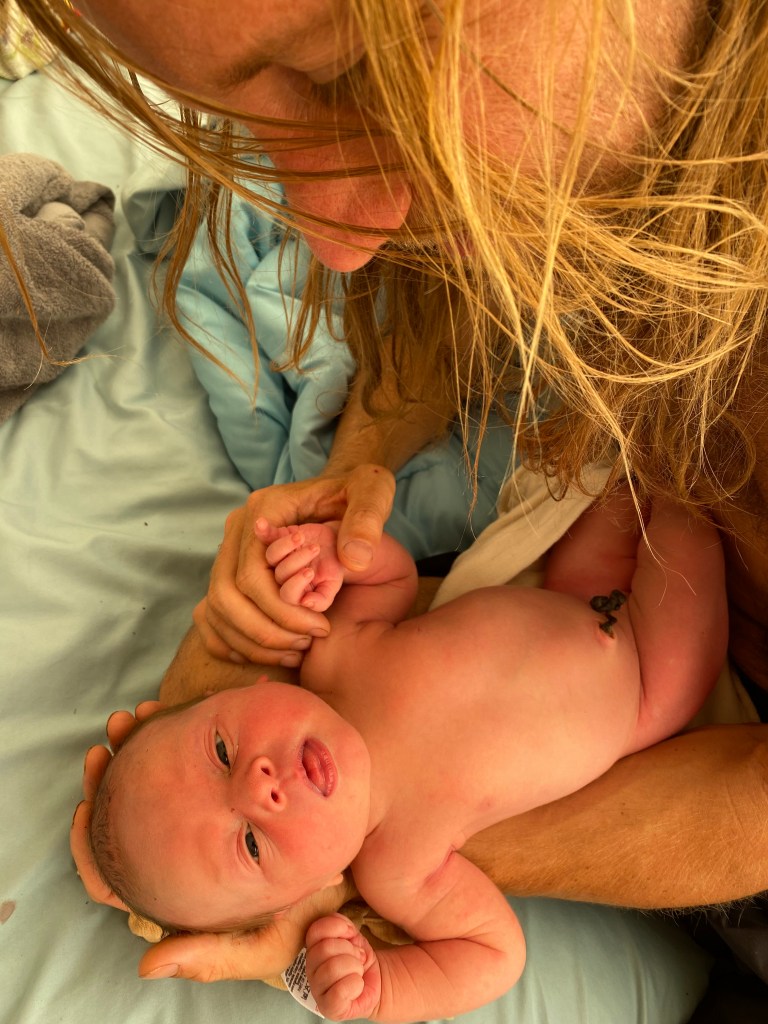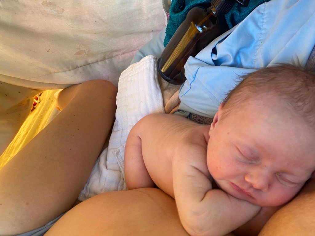 It was quite the experience! I was patiently waiting every time a surge would begin again and I pushed with all my might and made noises I’ve never heard in my life, until the ring of fire was upon me. Ohhh there it is. I’d heard about this. Well, I don’t have a choice, the only way is through. And so I just went for it. It took a couple of go’s, but finally the head was out!