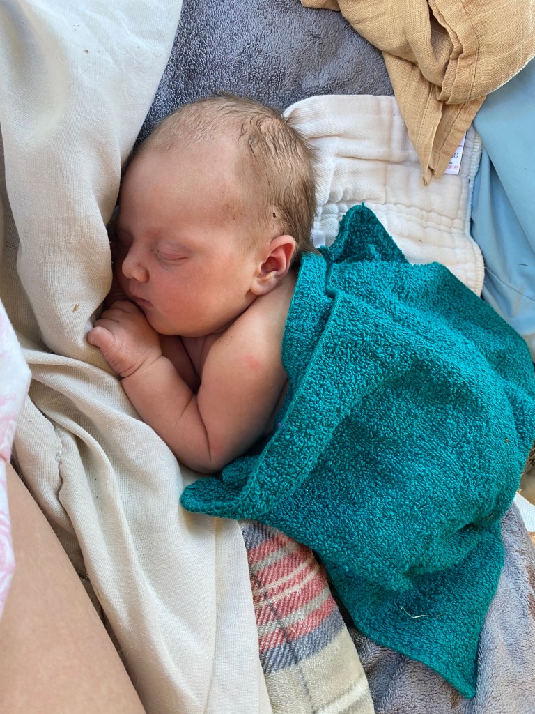 It was such a surreal, empowering moment. Eden did the classic crawl up my tummy, but she went all the way up to my neck, mistaking it for my nipple! The placenta took an hour to arrive, and honestly it was horrible, because I had a plastic bucket with a plastic toilet lid as a toilet, and it was so painful to sit and try to relax. I was so relieved when finally it plopped out!